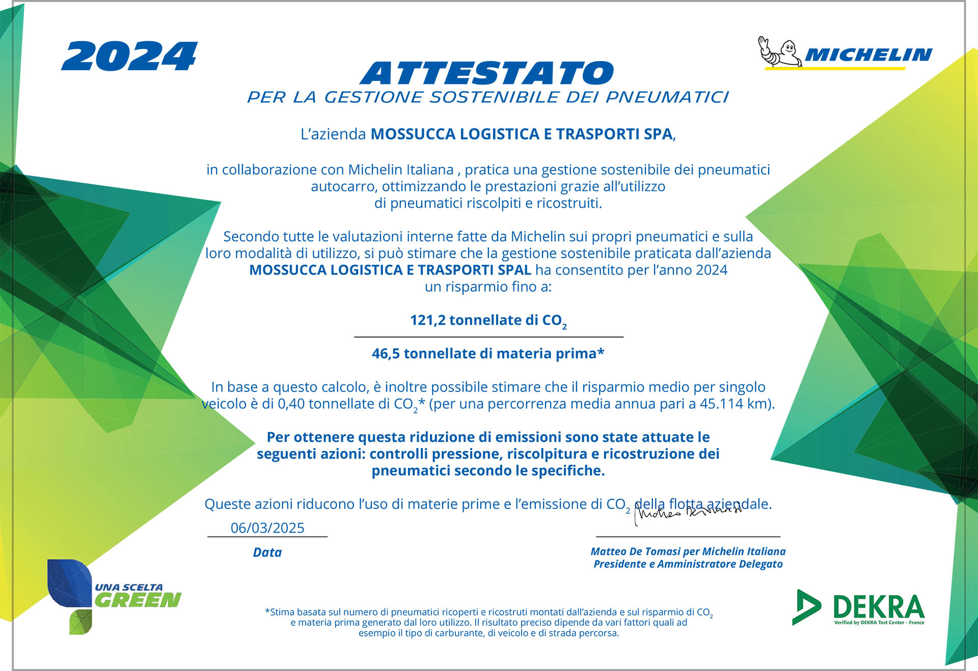 L’azienda MOSSUCCA SRL, in collaborazione con Michelin Italiana, pratica una gestione sostenibile dei pneumatici autocarro, ottimizzando le prestazioni grazie all’utilizzo di pneumatici riscolpiti e ricostruiti.